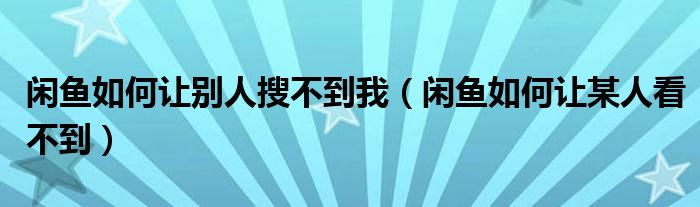 大家好,跳跳为你解答以上问题。闲鱼如何让别人搜不到我,闲鱼如何让某人看不到这个问题很多人还不知道,现在让我们一起来看看吧!
