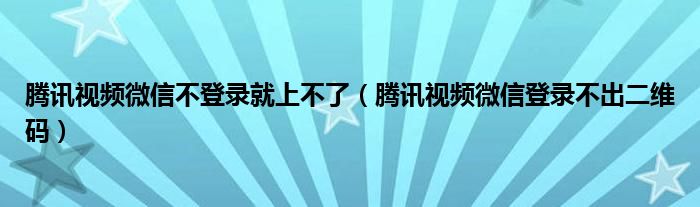 大家好,跳跳为你解答以上问题。腾讯视频微信不登录就上不了,腾讯视频微信登录不出二维码这个问题很多人还不知道,现在让我们一起来看看吧!
