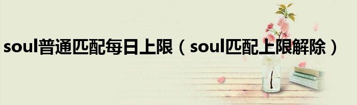 大家好,跳跳为你解答以上问题。soul普通匹配每日上限,soul匹配上限解除这个问题很多人还不知道,现在让我们一起来看看吧!