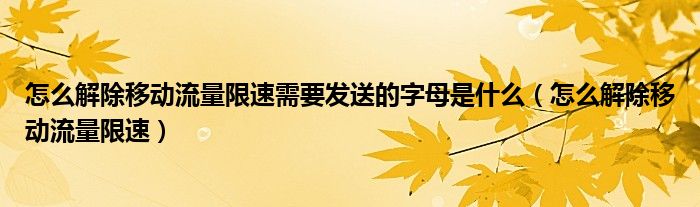 大家好,小晋来为大家解答以下问题,关于怎么解除移动流量限速需要发送的字母是什么,怎么解除移动流量限速很多人还不知道,今天让我们一起来看看吧!