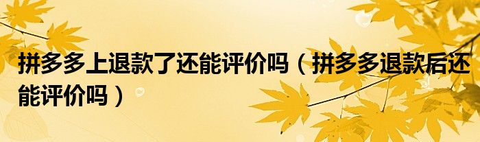 大家好,跳跳为你解答以上问题。拼多多上退款了还能评价吗,拼多多退款后还能评价吗这个问题很多人还不知道,现在让我们一起来看看吧!