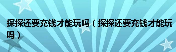 大家好,跳跳为你解答以上问题。探探还要充钱才能玩吗,探探还要充钱才能玩吗这个问题很多人还不知道,现在让我们一起来看看吧!