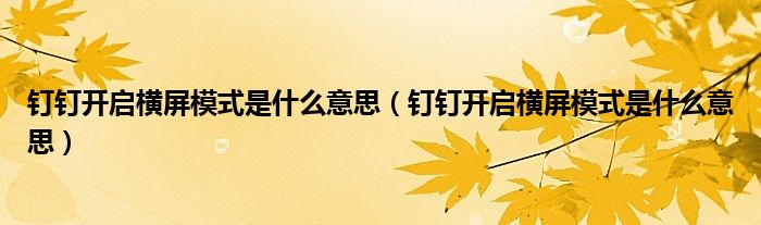 大家好,跳跳为你解答以上问题。钉钉开启横屏模式是什么意思,钉钉开启横屏模式是什么意思这个问题很多人还不知道,现在让我们一起来看看吧!