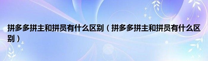 大家好,跳跳为你解答以上问题。拼多多拼主和拼员有什么区别,拼多多拼主和拼员有什么区别这个问题很多人还不知道,现在让我们一起来看看吧!