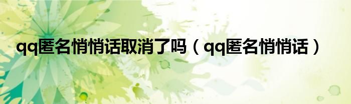 qq匿名悄悄话取消了吗(qq匿名悄悄话)
