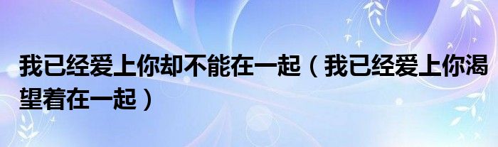 大家好,慧慧来为大家解答以上问题,我已经爱上你却不能在一起,我已经爱上你渴望着在一起很多人还不知道,现在让我们一起来看看吧!