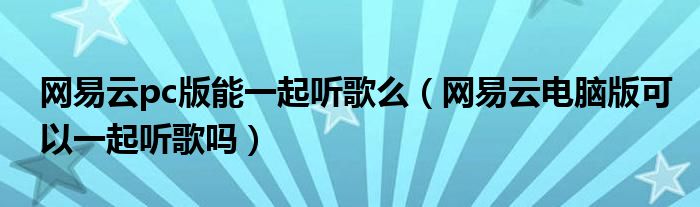 网易云pc版能一起听歌么(网易云电脑版可以一起听歌吗)