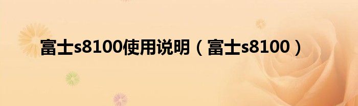 大家好,慧慧来为大家解答以上问题,富士s8100使用说明,富士s8100很多人还不知道,现在让我们一起来看看吧!