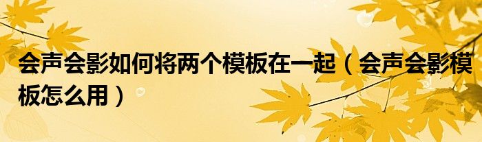会声会影如何将两个模板在一起(会声会影模板怎么用)