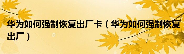 大家好,小晋来为大家解答以下问题,关于华为如何强制恢复出厂卡,华为如何强制恢复出厂很多人还不知道,今天让我们一起来看看吧!