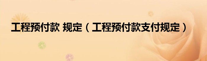 关于工程预付款 规定,工程预付款支付规定这个很多人还不知道,今天菲菲来为大家解答以上的问题,现在让我们一起来看看吧!