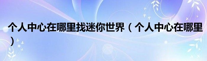 大家好,跳跳为你解答以上问题。个人中心在哪里找迷你世界,个人中心在哪里这个问题很多人还不知道,现在让我们一起来看看吧!