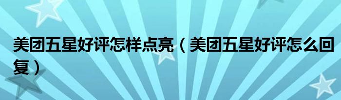 大家好,跳跳为你解答以上问题。美团五星好评怎样点亮,美团五星好评怎么回复这个问题很多人还不知道,现在让我们一起来看看吧!