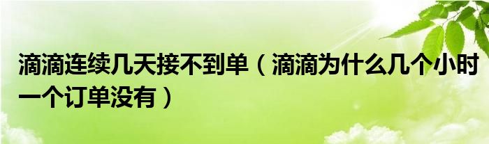 大家好,跳跳为你解答以上问题。滴滴连续几天接不到单,滴滴为什么几个小时一个订单没有这个问题很多人还不知道,现在让我们一起来看看吧!