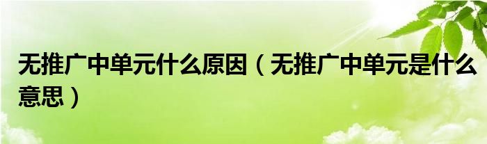 大家好,跳跳为你解答以上问题。无推广中单元什么原因,无推广中单元是什么意思这个问题很多人还不知道,现在让我们一起来看看吧!