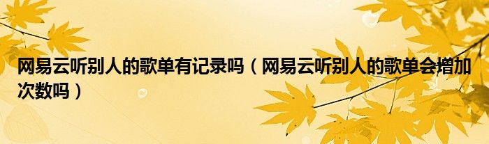 大家好,跳跳为你解答以上问题。网易云听别人的歌单有记录吗,网易云听别人的歌单会增加次数吗这个问题很多人还不知道,现在让我们一起来看看吧!