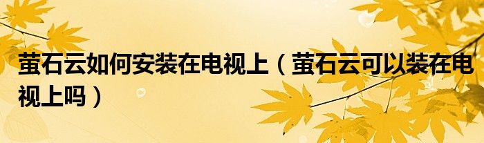大家好,跳跳为你解答以上问题。萤石云如何安装在电视上,萤石云可以装在电视上吗这个问题很多人还不知道,现在让我们一起来看看吧!