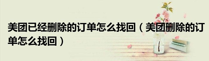 大家好,跳跳为你解答以上问题。美团已经删除的订单怎么找回,美团删除的订单怎么找回这个问题很多人还不知道,现在让我们一起来看看吧!