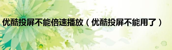 大家好,跳跳为你解答以上问题。优酷投屏不能倍速播放,优酷投屏不能用了这个问题很多人还不知道,现在让我们一起来看看吧!