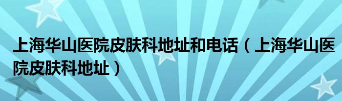 关于上海华山医院皮肤科地址和电话,上海华山医院皮肤科地址这个很多人还不知道,今天菲菲来为大家解答以上的问题,现在让我们一起来看看吧!