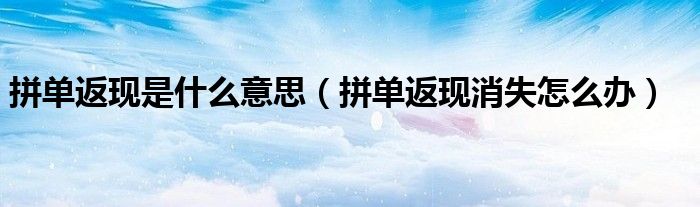大家好,跳跳为你解答以上问题。拼单返现是什么意思,拼单返现消失怎么办这个问题很多人还不知道,现在让我们一起来看看吧!