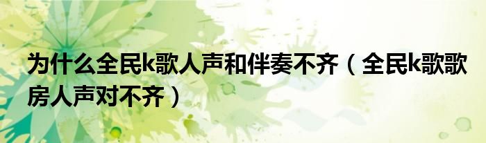 大家好,跳跳为你解答以上问题。为什么全民k歌人声和伴奏不齐,全民k歌歌房人声对不齐这个问题很多人还不知道,现在让我们一起来看看吧!