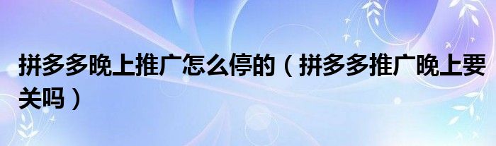 大家好,跳跳为你解答以上问题。拼多多晚上推广怎么停的,拼多多推广晚上要关吗这个问题很多人还不知道,现在让我们一起来看看吧!