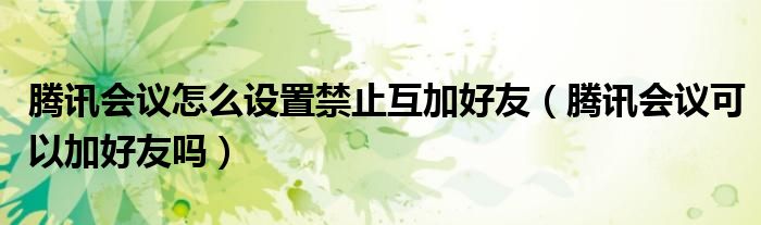 大家好,跳跳为你解答以上问题。腾讯会议怎么设置禁止互加好友,腾讯会议可以加好友吗这个问题很多人还不知道,现在让我们一起来看看吧!