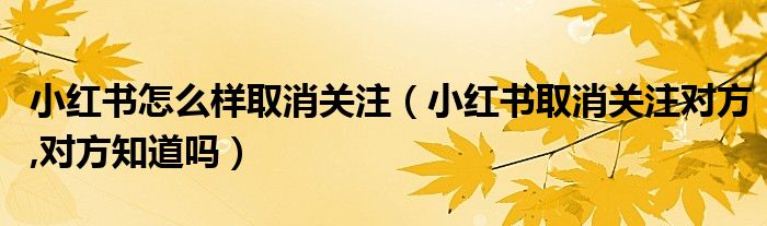 大家好,跳跳为你解答以上问题。小红书怎么样取消关注,小红书取消关注对方,对方知道吗这个问题很多人还不知道,现在让我们一起来看看吧!