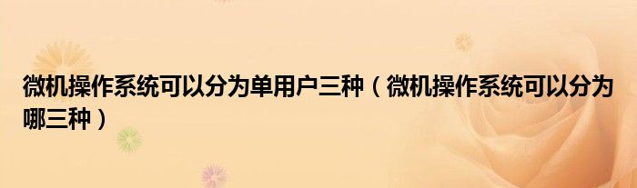 大家好,跳跳为你解答以上问题。微机操作系统可以分为单用户三种,微机操作系统可以分为哪三种这个问题很多人还不知道,现在让我们一起来看看吧!