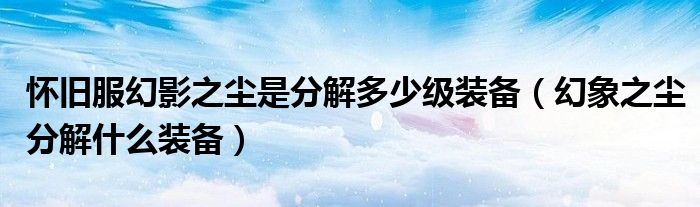 关于怀旧服幻影之尘是分解多少级装备,幻象之尘分解什么装备这个很多人还不知道,今天菲菲来为大家解答以上的问题,现在让我们一起来看看吧!
