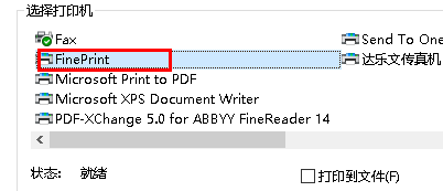 4、弹出了如下所示的打印窗口界面后,我们在选择打印机一栏中选择“FinePrint”。