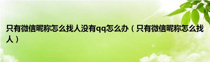 只有微信昵称怎么找人没有qq怎么办(只有微信昵称怎么找人)
