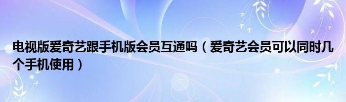 大家好,跳跳为你解答以上问题。电视版爱奇艺跟手机版会员互通吗,爱奇艺会员可以同时几个手机使用这个问题很多人还不知道,现在让我们一起来看看吧!