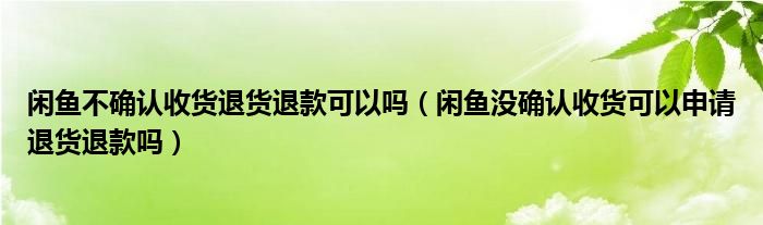 解答:1、闲鱼没有确认收货是不能申请退款的。签收鱼后,收据还没有确认。一般不能只申请退款,因为对方已经发货了。只有在货物被退回或者你可以申请退款之后。