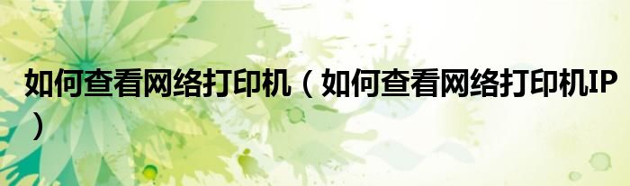 关于如何查看网络打印机,如何查看网络打印机IP这个很多人还不知道,今天菲菲来为大家解答以上的问题,现在让我们一起来看看吧!