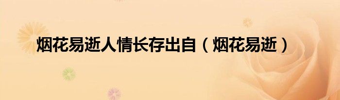 大家好,小晋来为大家解答以下问题,关于烟花易逝人情长存出自,烟花易逝很多人还不知道,今天让我们一起来看看吧!