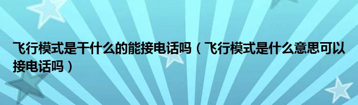 解答:1、不能接电话。飞行模式也叫航空模式,用户在飞行时可以选择开启该功能。