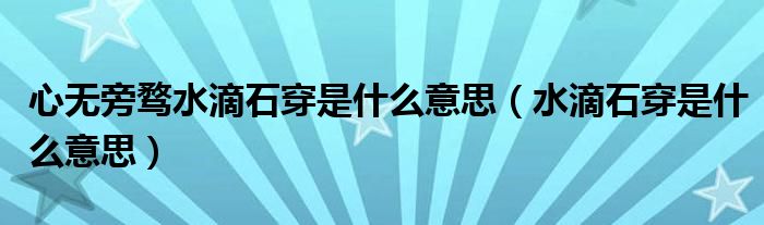 大家好,小晋来为大家解答以下问题,关于心无旁骛水滴石穿是什么意思,水滴石穿是什么意思很多人还不知道,今天让我们一起来看看吧!