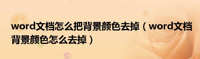 大家好,小晋来为大家解答以下问题,关于word文档怎么把背景颜色去掉,word文档背景颜色怎么去掉很多人还不知道,今天让我们一起来看看吧!