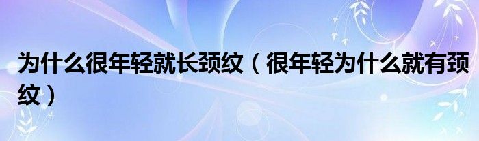 大家好,小晋来为大家解答以下问题,关于为什么很年轻就长颈纹,很年轻为什么就有颈纹很多人还不知道,今天让我们一起来看看吧!