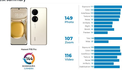 虽然HUAWEI P50系列是昨天才发布的,但P50 Pro已经被冠以“拍照最好的智能手机”的称号,这就是目前市面上能买到的。该设备在 DxOMark 上的总得分为 144 分,排在小米 11 Ultra 之前。