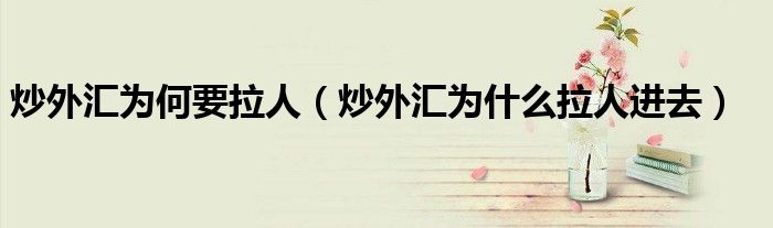 大家好,小晋来为大家解答以下问题,关于炒外汇为何要拉人,炒外汇为什么拉人进去很多人还不知道,今天让我们一起来看看吧!