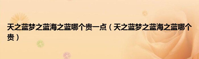 大家好,小晋来为大家解答以下问题,关于天之蓝梦之蓝海之蓝哪个贵一点,天之蓝梦之蓝海之蓝哪个贵很多人还不知道,今天让我们一起来看看吧!