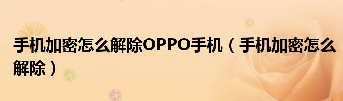 大家好,小晋来为大家解答以下问题,关于手机加密怎么解除OPPO手机,手机加密怎么解除很多人还不知道,今天让我们一起来看看吧!