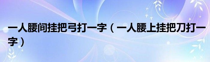 大家好,小晋来为大家解答以下问题,关于一人腰间挂把弓打一字,一人腰上挂把刀打一字很多人还不知道,今天让我们一起来看看吧!