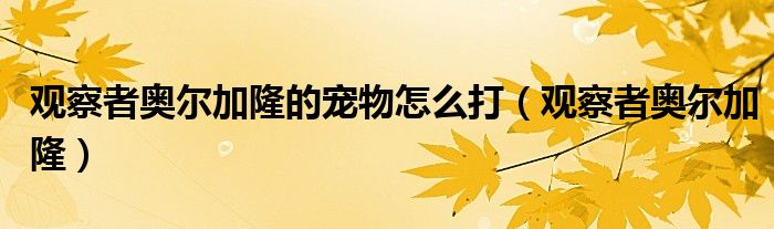 大家好,小晋来为大家解答以下问题,关于观察者奥尔加隆的宠物怎么打,观察者奥尔加隆很多人还不知道,今天让我们一起来看看吧!