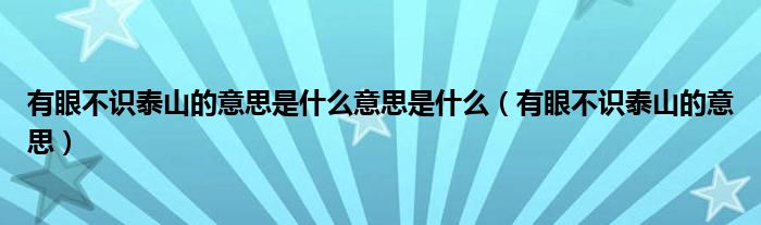 大家好,小晋来为大家解答以下问题,关于有眼不识泰山的意思是什么意思是什么,有眼不识泰山的意思很多人还不知道,今天让我们一起来看看吧!