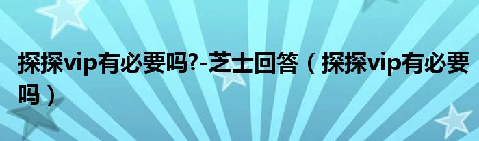大家好,小晋来为大家解答以下问题,关于探探vip有必要吗?-芝士回答,探探vip有必要吗很多人还不知道,今天让我们一起来看看吧!