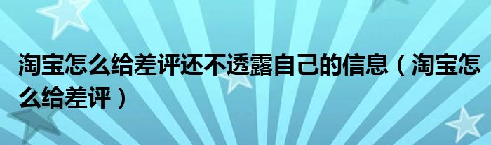 大家好,小晋来为大家解答以下问题,关于淘宝怎么给差评还不透露自己的信息,淘宝怎么给差评很多人还不知道,今天让我们一起来看看吧!
